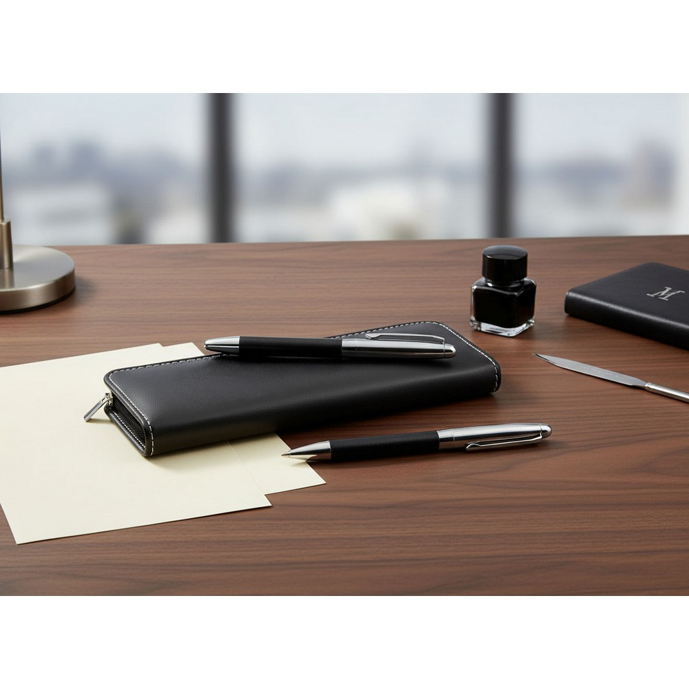 Verleihen Sie der täglichen Schreibkultur Ihrer Kunden einen Hauch von Eleganz. Das geschmeidige Design erleichtert den Alltag – sowohl im Büro als auch im Homeoffice. Dieses Schreibset bleibt nicht im Müll, sondern wird zu einem wertvollen Begleiter, der Ihre Markenidentität nachhaltig stärkt.
