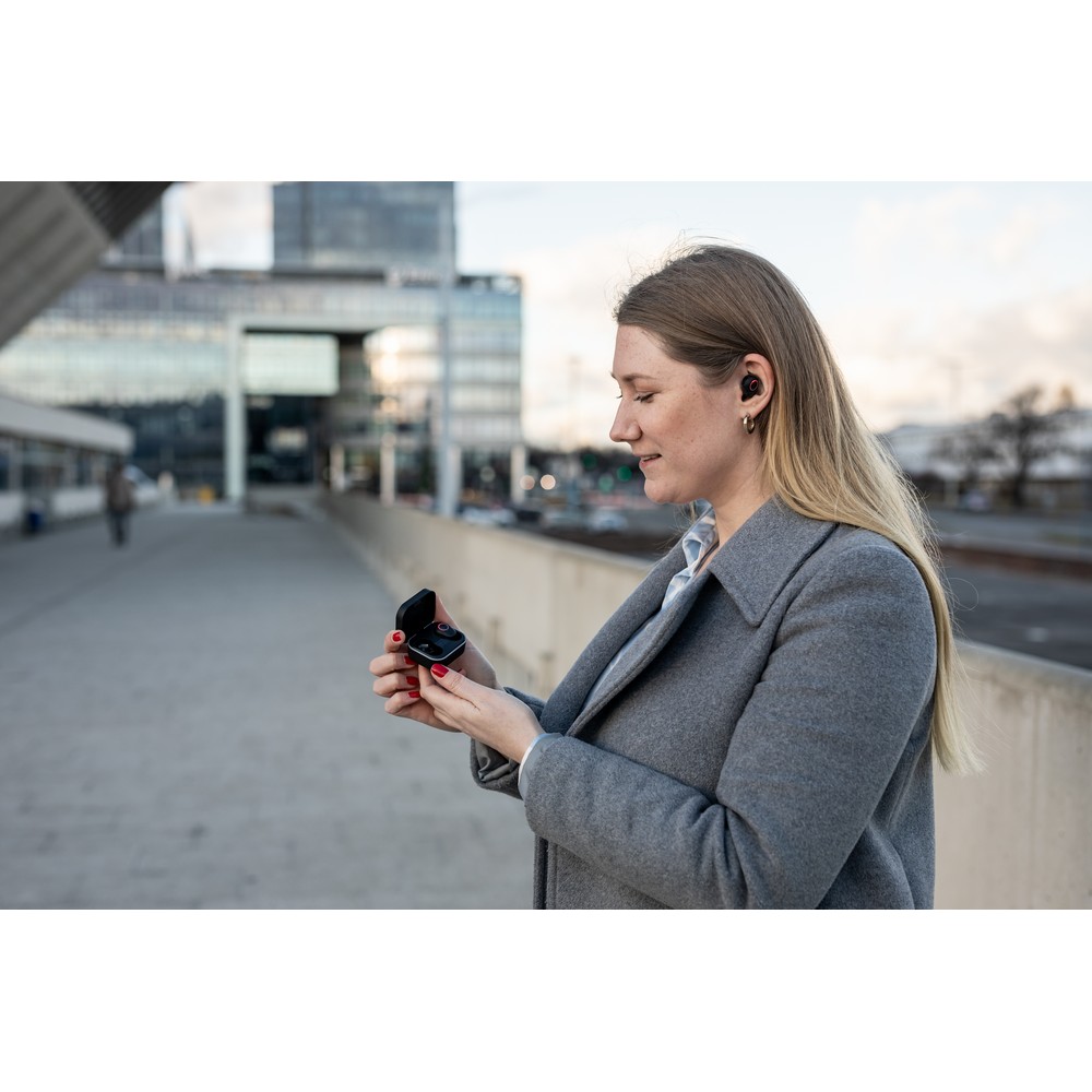 Entdecken Sie die perfekten Wireless Kopfhörer, die nicht nur Ihre Marke tragen, sondern auch den Alltag Ihrer Kunden bereichern. Mit ihrem kompakten Design und einem Gewicht von nur 35 g sind sie der ideale Begleiter für unterwegs. Die Kopfhörer bieten eine beeindruckende Arbeitszeit von über 2 Stunden und eine Reichweite von bis zu 10 m – perfekt, um Calls entgegenzunehmen und Musik zu genießen. Dank des vielseitigen Druckverfahrens können Sie Ihr Logo individuell platzieren und garantieren so eine langfristige Sichtbarkeit Ihrer Marke.